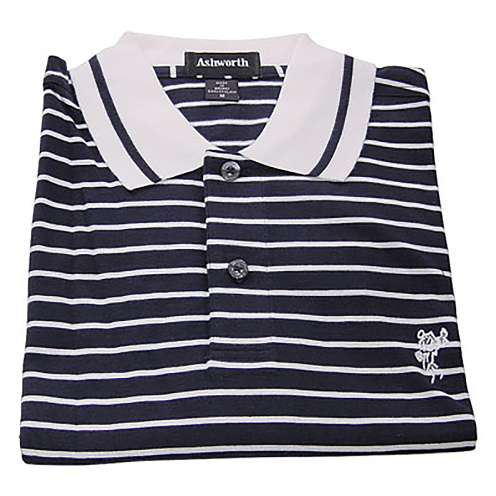 Ashworth Open Slv ストライプ ポロ(ネイビー×白)