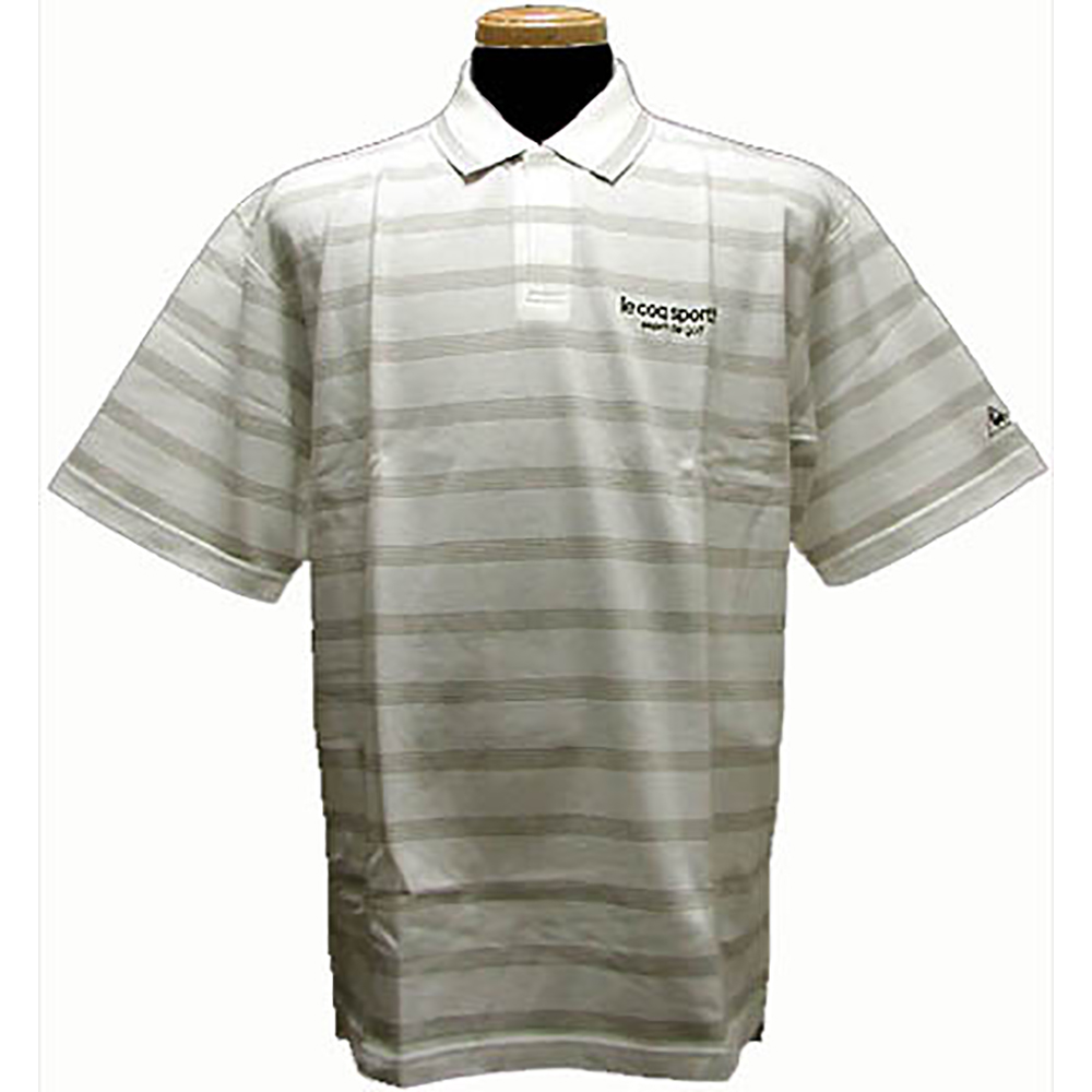 ルコックレディースポロシャツ(グレー×ストライプ) (L)
