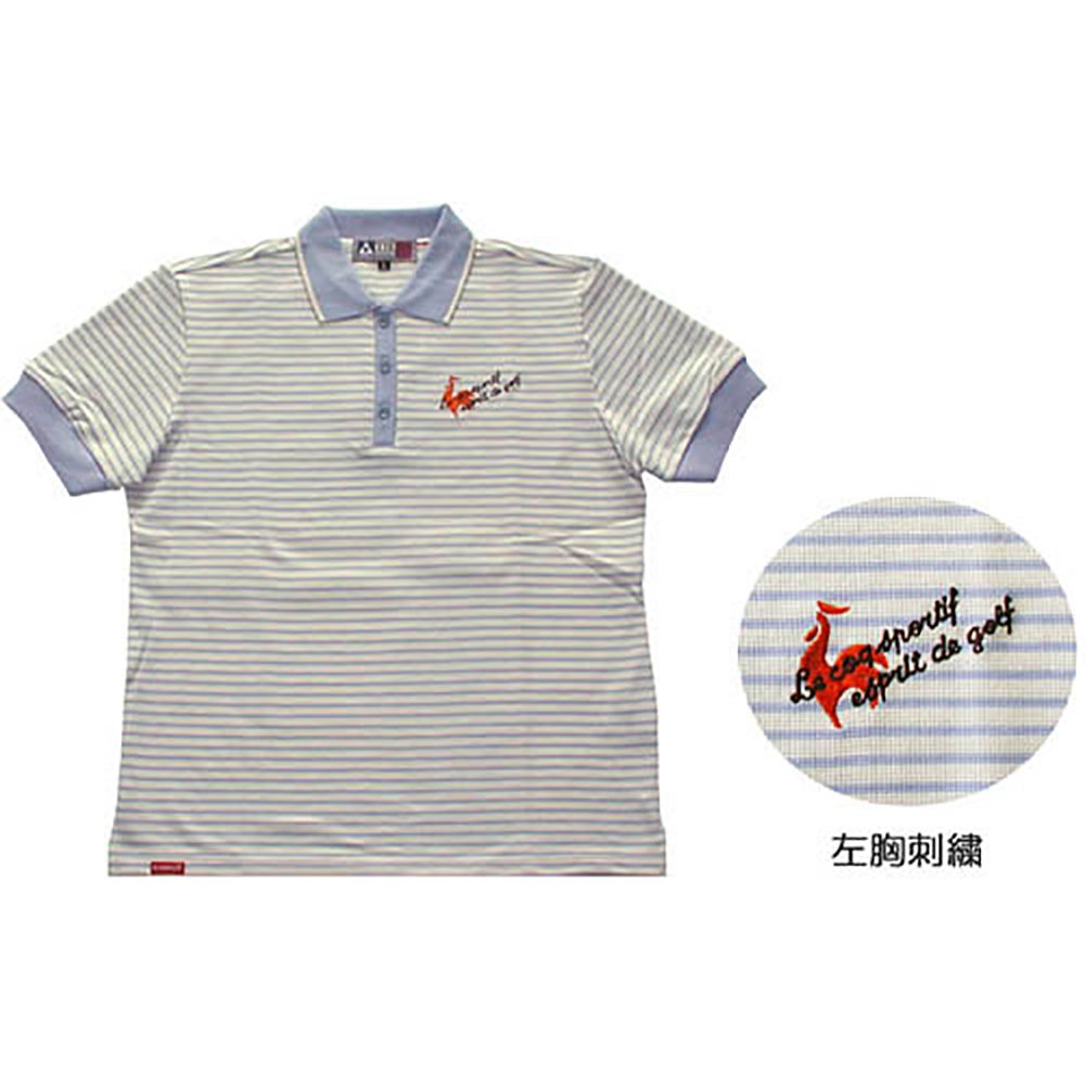ルコックレディースポロシャツ(ブルー×ストライプ) (L)