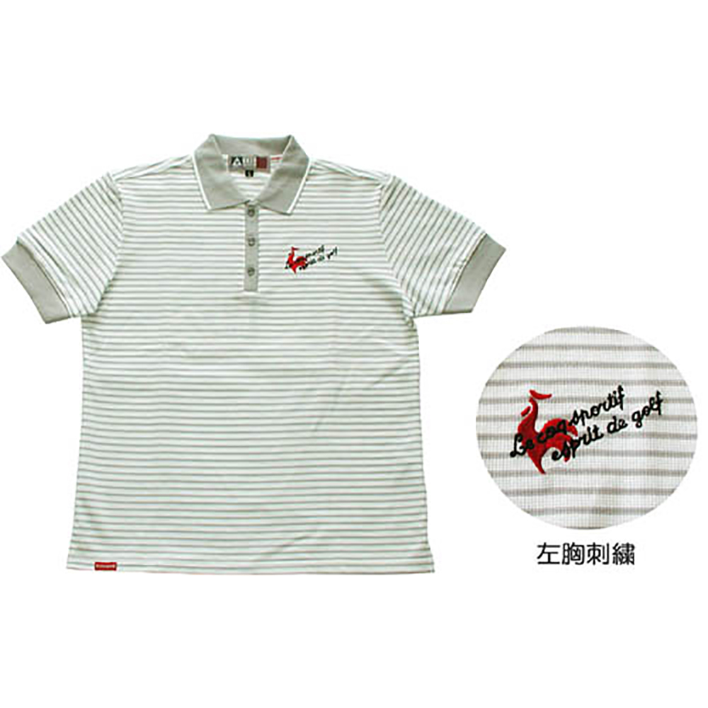 ルコックレディースポロシャツ(グレー×ストライプ) (M)