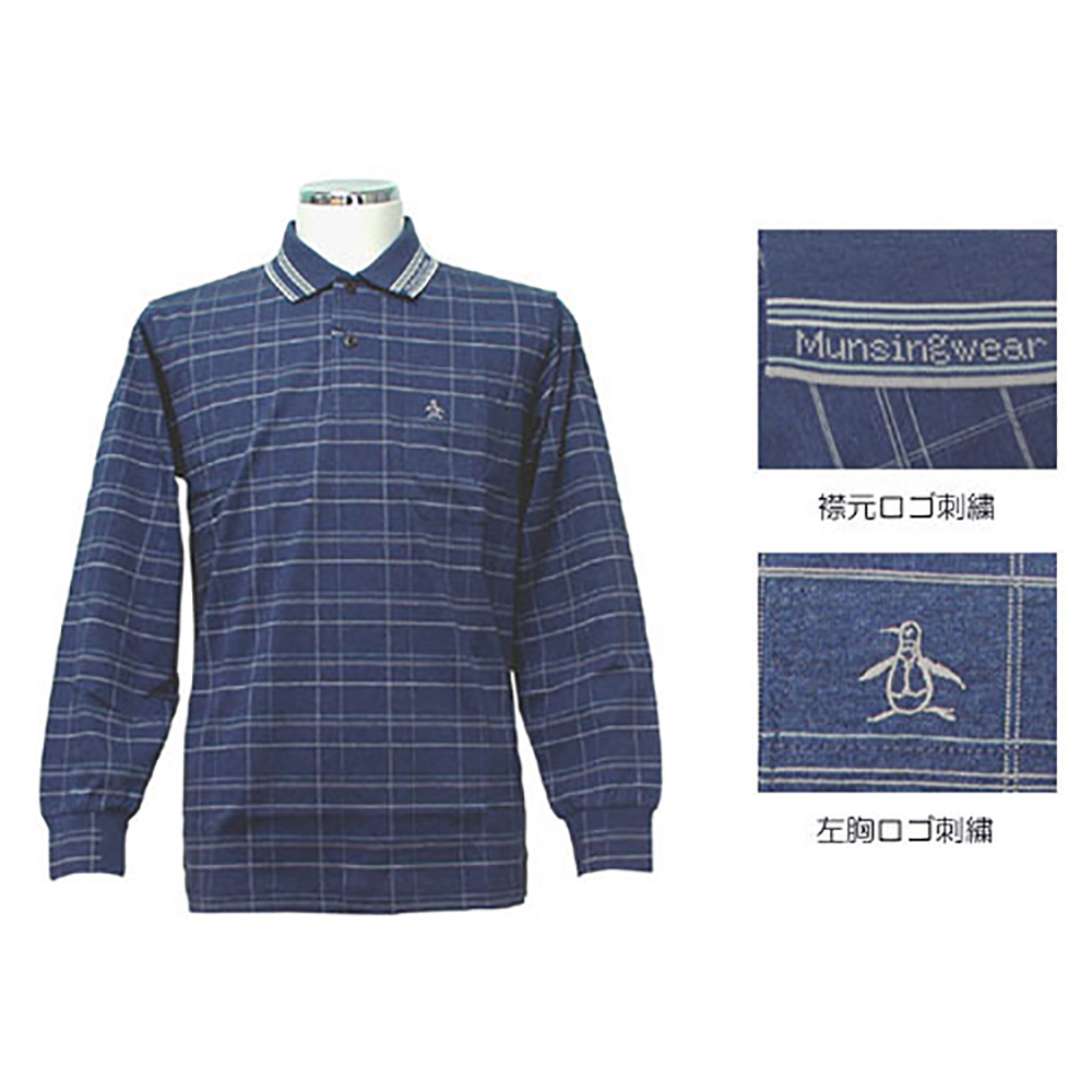 マンシングウェア チェックシャツ長袖 (ネイビー) (L)