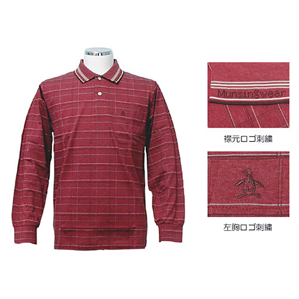 マンシングウェア チェックシャツ長袖 (ワインレッド) (L)