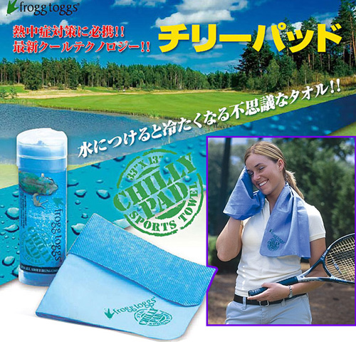 超揮発性新素材によるこのスポーツ用タオルは、水につけて絞るだけで外気より