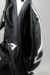 ![]() 両肩で担げるダブルショルダーベルトの採用で、セルフプレーでも疲れない、スタンド式キャ ディバッグ。 豊富な収納力と、アスリート感漂う黒×白のカラーリングを採用。 車のトランクや ゴルフカートへの積み下ろしの際に便利な、持ち手付き。 ペットボトルホルダには保冷・保温 加工を施したモデル。 |