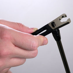 (4)接着剤が固まったら専用レンチを用いて、ヘッドとシャフトを取り付ける(フリーナット方式)。