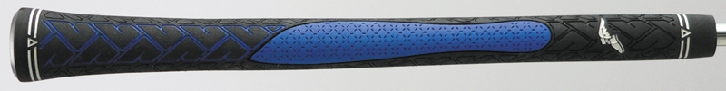 黒いゴムの部分はコントロールの維持を助け、手のひらが直接触れるブルーの部分は心地よいフィット感で