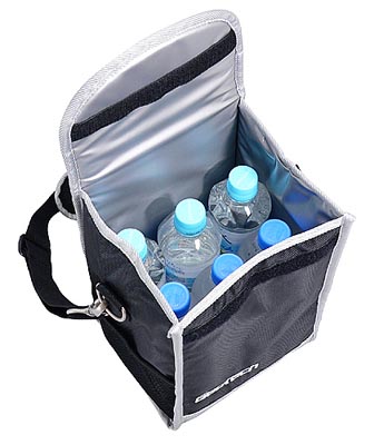 ゴルフプレーの際に便利なショルダーベルト付きの保温・保冷バッグ。500mlのペットボトルが6本入る大容量、保温・保冷機能付きで便利。サイドポケットにはミニタオル等の小物も入れられる。