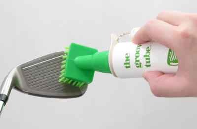 クラブフェイスやゴルフシューズ等の掃除に便利なクリーナー。毛足の長いナイロンブラシとボトルに入れた水によって、程よく調節された水量で手軽に掃除ができる優れもの。クリップ付きなので、バッグに取り付けられて便利。