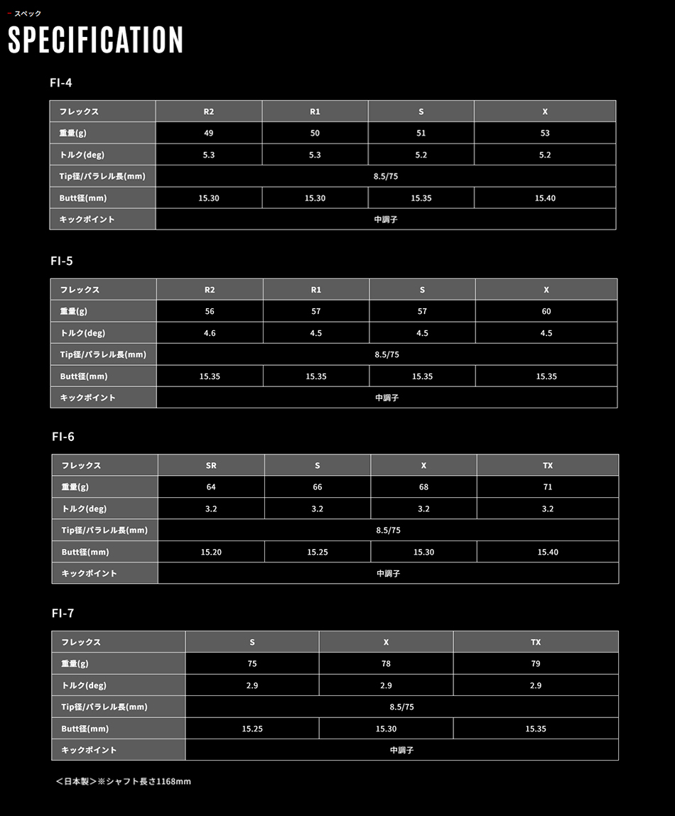 Code | Flex | GeoFlex | Club No. | Tip | Tip Type | Butt | Len. | Weight | Trq. | K.P. | Trimming | CPM | B.P. | Tip Stf. | Butt Stf. | Price(JPY) |